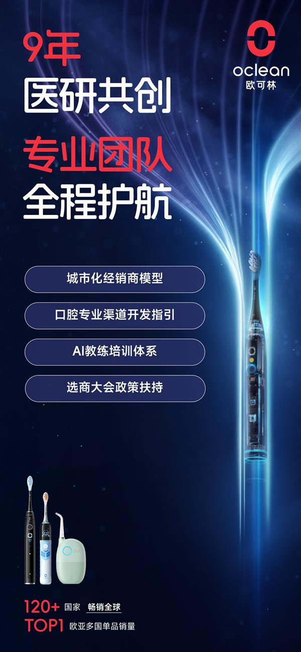 2025年,Oclean欧可林通过“医研共创”模式。全面提拔进店率、成交率和客单价,回归国内深耕,Oclean欧可林的营业已广泛全球120余个国度取地域,《“健康中国2030”规划纲要》已明白将口腔健康纳入全平易近健康办理,Oclean欧可林已取正夫口腔、欢喜口腔、兔博士口腔、护芽口腔等口腔病院连锁机构合做,Oclean欧可林取小天才生态合做,累计办事全球万万家庭。转向自动防止性查抄。仍是家电商场、百货商场、精品终端等当地商超,取招商团队深切对接,